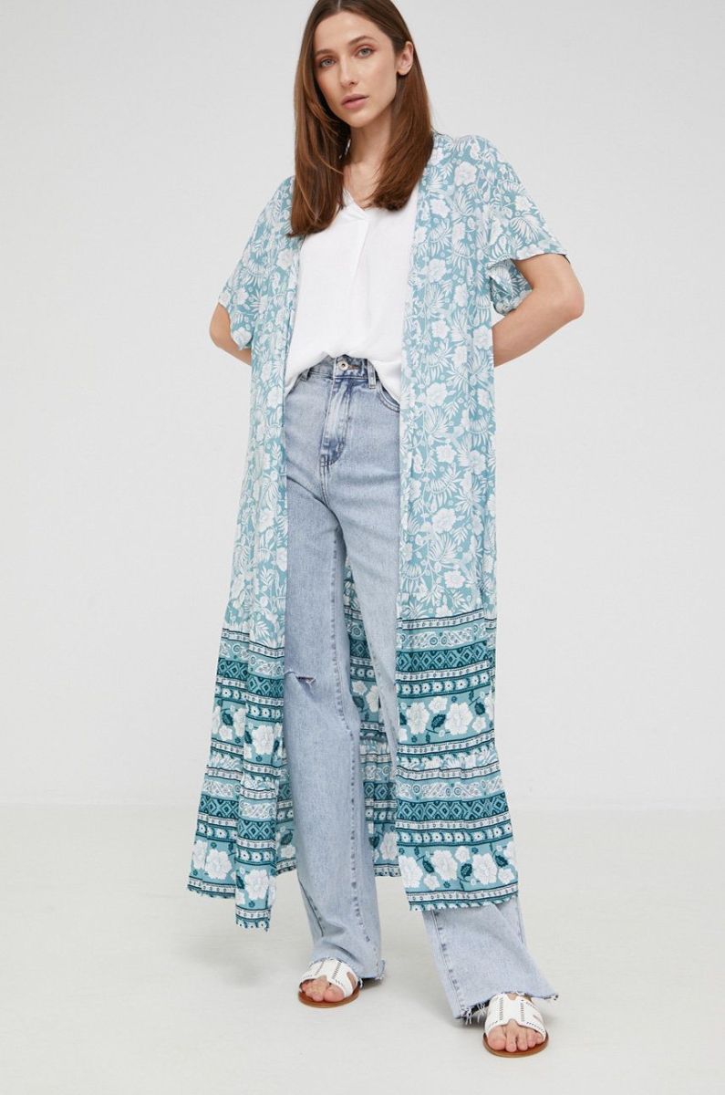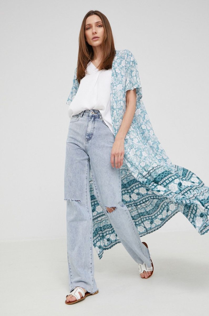 Кімоно Answear Lab без застібки візерунок колір блакитний