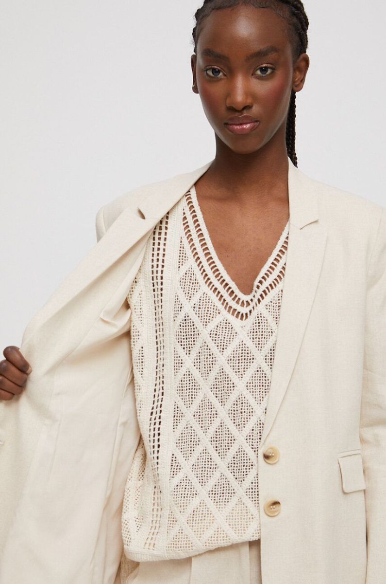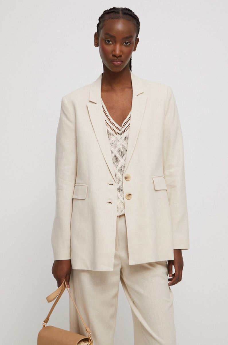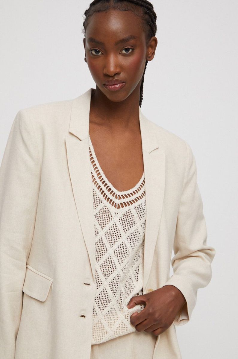 Льняний жакет Medicine жіноча колір бежевий однобортний однотонна