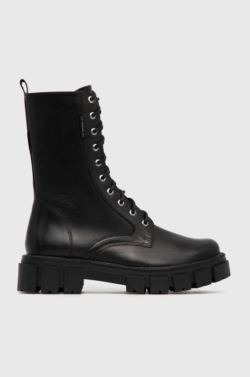 Шкіряні черевики Wojas жіночі колір чорний на плоскому ходу (1809433)